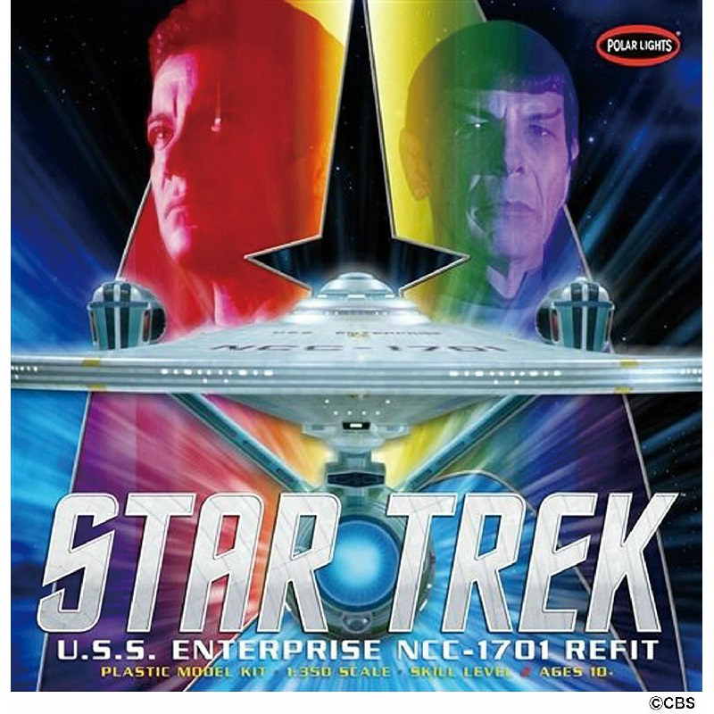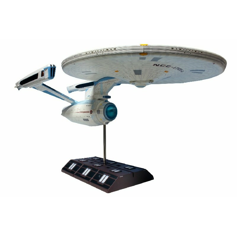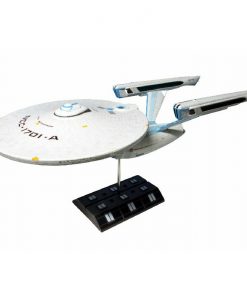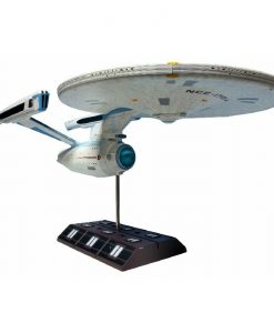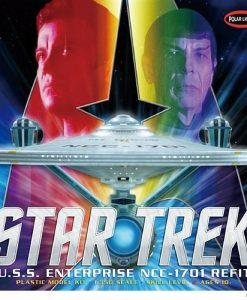 Upon return from her 5 year mission, the U.S.S. Enterprise™ was subject to upgrades and improvement just as any other vessel would. Known as a “Refit”, nearly all of the ship’s systems were overhauled along with swept back pylons upon which all new nacelles were installed. Rather than “battleship” gray, the craft glistened with pearlescent white surface panelling. The popularity of the ship’s design among modellers rivals that of the original space-frame. This model from Polar Lights measures nearly 3-feet long and features interior structures like the shuttle bay and stands firmly upon its base with the support from a metal rod. Marking decals and assembly instructions accompany the kit with everything contained within in an all-new package.