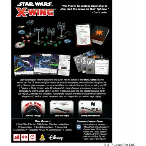 Star Wars: X-Wing (Second Edition) – Galactic Empire Squadron Starter Pack contains everything a new player needs to fly into battle in support of the Galactic Empire. From miniatures to measurement tools to dice and tokens, all the core components for Star Wars: X-Wing can be found in this set. The four iconic Galactic Empire ships included in this starter boast enough firepower to crush any opposition and show the galaxy the true might of the Galactic Empire!