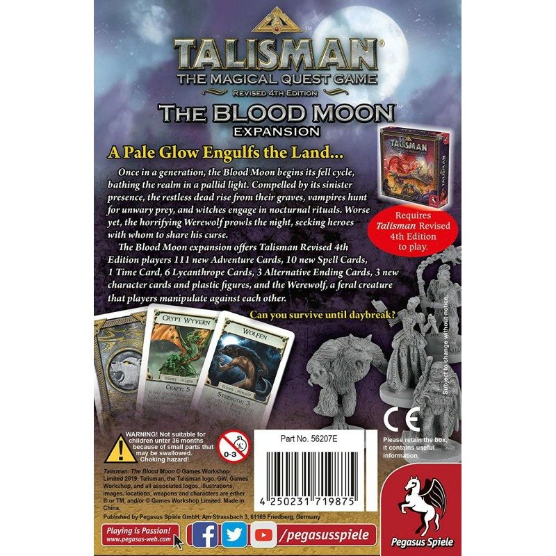 With over 100 Adventure Cards, plus new spells, characters, and alternative endings, Talisman: The Blood Moon Expansion adds a gripping layer of gothic horror to your quest for the Crown of Command.