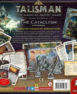 Decades ago an apocalypse destroyed the world, wrecking its cities, ravaging the land, and devastating the population. Now, after more than a generation, a new age dawns with The Cataclysm, an expansion for Talisman Revised 4th Edition. People are returning to establish settlements, nature is evolving in bizarre, unprecendented ways, and traces of the former civilization can be found everywhere. This is a time of chaos and possibility, of challenges and heroism.