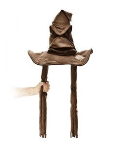 Harry Potter Sorting Hat Interactive Electronic Prop Relplica: Are you a Gryffindor, a Slytherin, a Hufflepuff or a Ravenclaw? Find out your Hogwarts House with the Harry Potter Sorting Hat Interactive Electronic Prop Replica. Wear this interactive replica on your head and bring it to life with motion and sounds. Take control of the Sorting Hat with the two tassels that allow you to move the mouth and tip of the hat. There’s nothing hidden in your head the Sorting Hat can’t see, so try it on and discover your Hogwarts House!