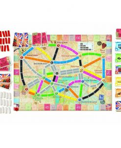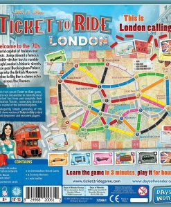 Ticket to Ride: London features the familiar gameplay from the Ticket to Ride game series — collect cards, claim routes, draw tickets — but on a scaled-down map of 1970s London that allows you to complete a game in no more than 15 minutes.