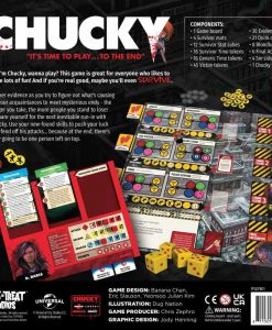 In the officially licensed Chucky board game, each player will gather evidence about the mysterious murders that have been going on. This will give them skills and abilities to roll the dice and maybe handle an encounter with Chucky himself at the end of each round! After 3 rounds, the player who does the best at overcoming these challenges will be declared the winner survivor.