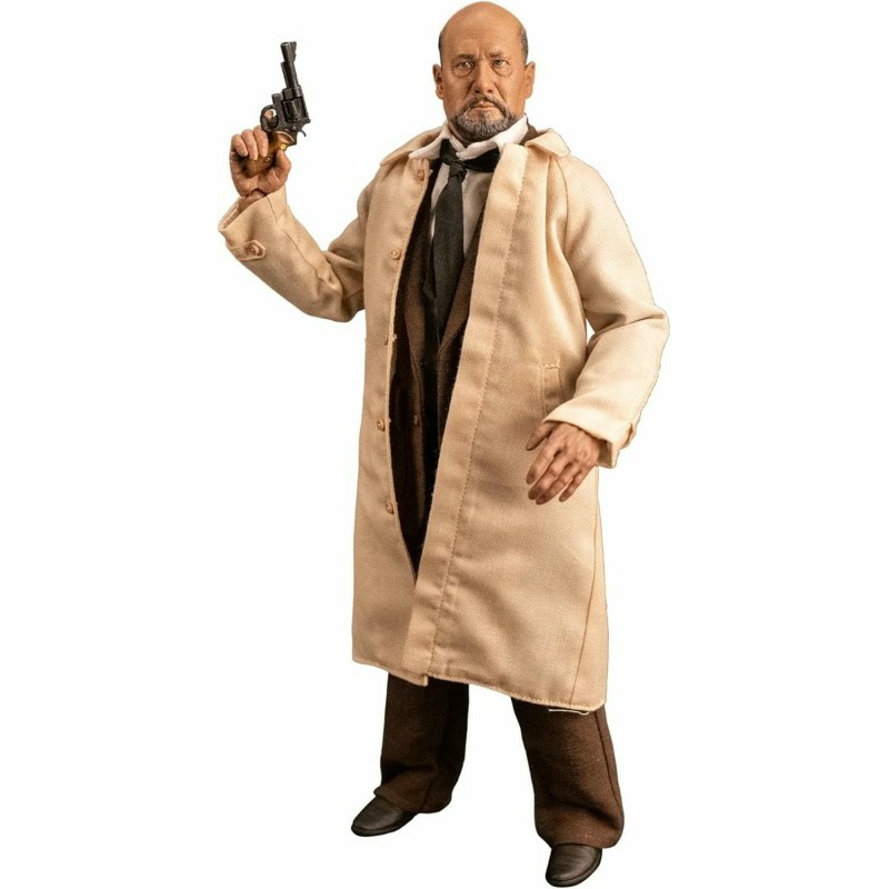 - READY FOR ACTION: Figure has 30+ points of articulation. Fully clothed in a screen-accurate costume this figure includes: 2 additional interchangeable hands, Trench coat, and Revolver.