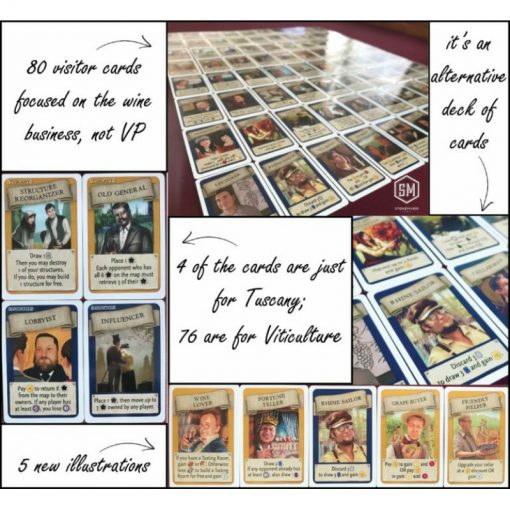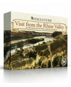 You have new visitors! Visit from the Rhine Valley, an expansion for Viticulture, provides you with a new set of eighty visitor cards, which focus less on victory points and more on the wine business itself. These cards have their own unique backs as they must be played without other visitor cards from Viticulture, Tuscany, and Moor Visitors.